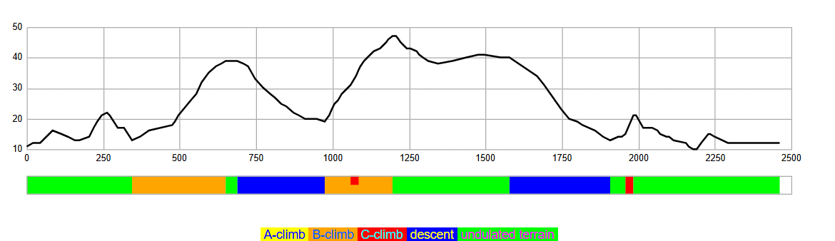 DISTANSBANA för fri stil 15 km/7,5 km samt 10 km klassiskt:Höjdprofil- Distans 2.5 Km